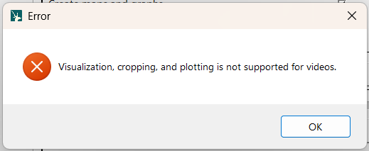 I´m just a biology student and 'm using the software to test animal identification in videos produced by camera traps, but at the end of the entire process and post-processing, the error shown in the photo appears, mentioning “Visualization, cropping, and plotting is not supported for videos”.