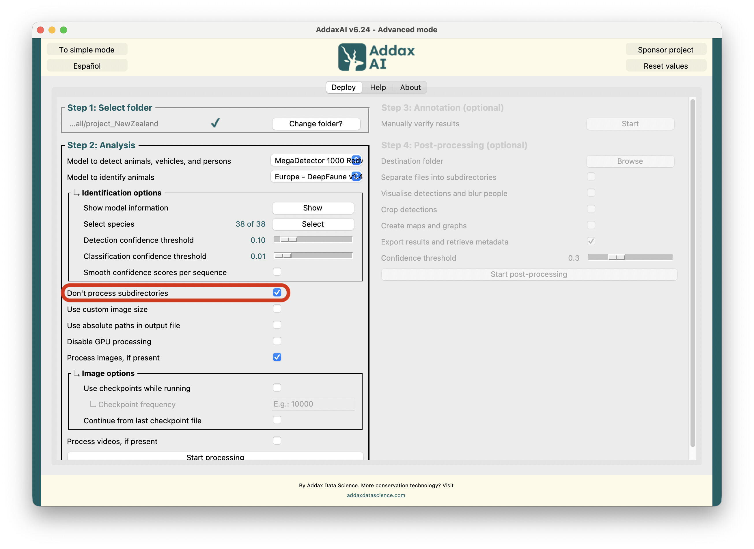 Side note- Is there a way to run AddaxAI recursively through folders?